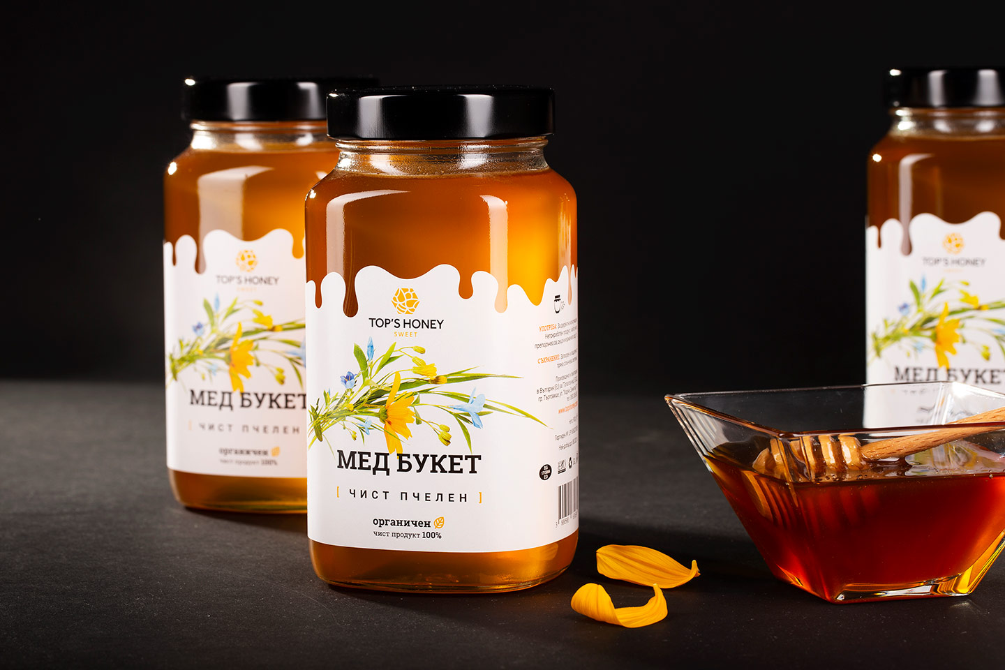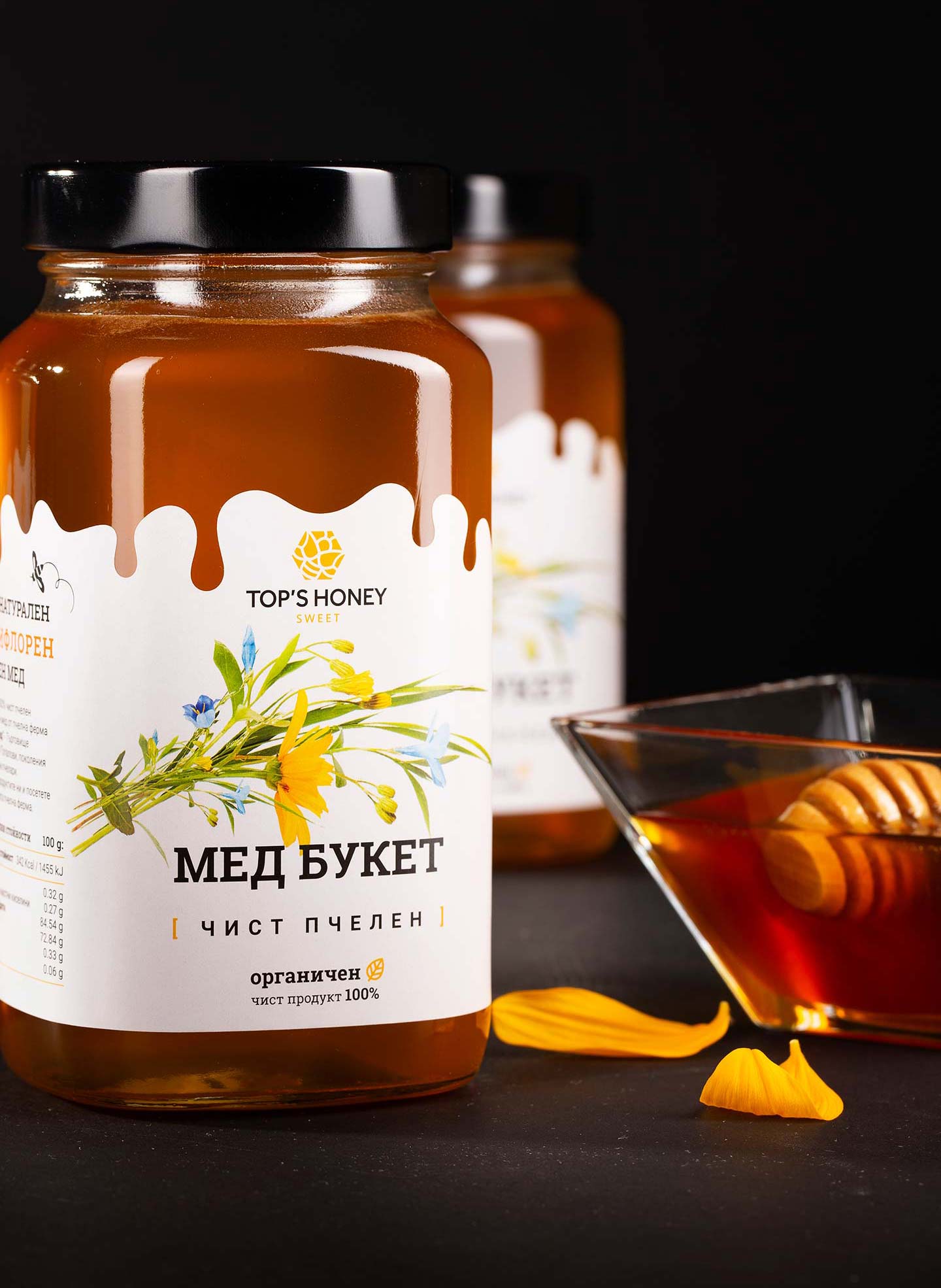 Top’s Honey pure polyfloral honey is a wholesome, healthy and delicious addition to your diet. An irresistible temptation in a jar! It balances and diversifies your diet, enriching it with vitamins, minerals and essential bioactive compounds. It aids development and restores your strength. A faithful champion in the fight against enemies of your body, pure pleasure and bliss for your senses!