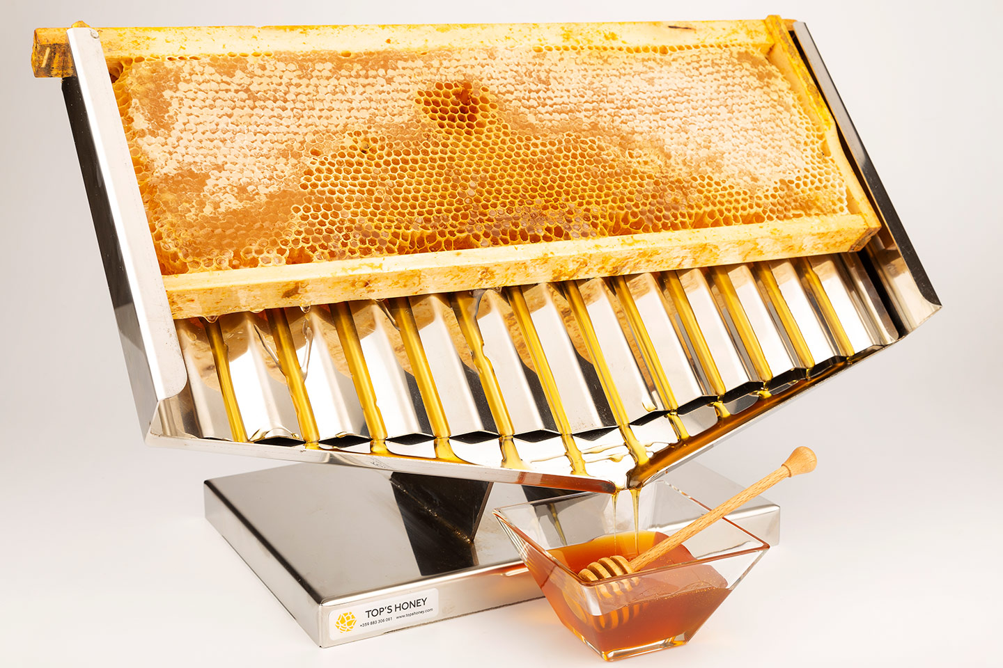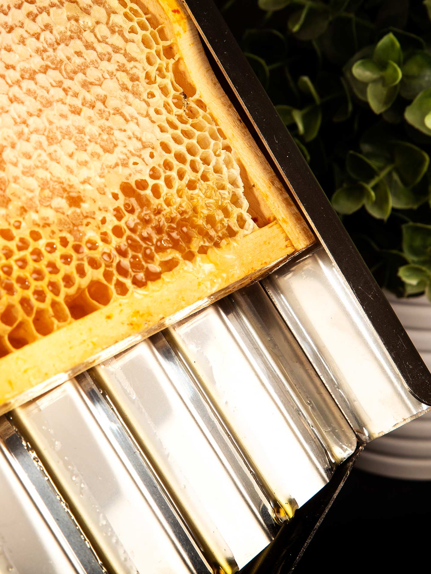 Our honeycomb is not just a nutritious addition to your table. The elegant metal frame is a guarantee for an unforgettable gourmet experience! This eye-catching installation is held in high regard by hotels and restaurants where it serves as a fabulous attraction at buffets.